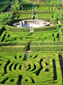 Tra i più celebri esempi del Rinascimento italiano, la creazione del magnifico parterre del castello di Vignanello si lega alla committenza di Marcantonio Marescotti e della sua giovane sposa Donna Ottavia Orsini, figlia di Giulia Farnese e di Vicino Orsini da cui aveva ereditato l’amore per i barchi e i giardini. Nel 1704, Francesco Maria Ruspoli ereditava dai Marescotti il castello e le terre di Vignanello avviandovi la realizzazione di un nuovo giardino che, grazie al suo gusto raffinatissimo e alle inesauribili competenze del grande decoratore Francesco Corallo, si impose nel giro di poco come una delle più raffinate invenzioni di Ars topiaria.